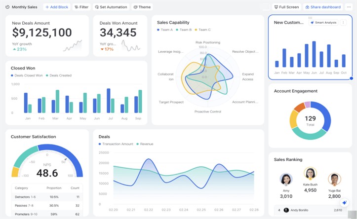 Intelligent dashboards for real-time visibility, analytics, and operational awareness.